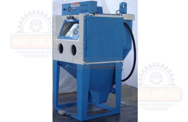 Wet blasting machine is suitable for mild cleaning applications where components are soft and one has to overcome from the problems of damage or over blasting of surfaces by a dry blaster. Surfaces are not damaged as water acts as a buffer between the media and the surface.